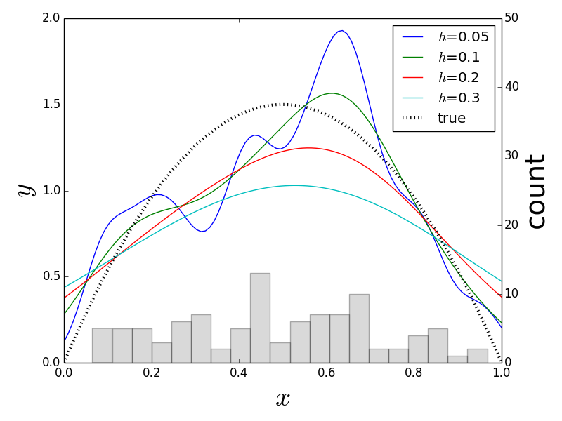 # where $p(x)$ is what we are trying to estimate with $\hat{p}_h$. The