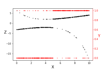 _=ax2.set_ylabel('Y',fontsize=16,rotation=0,color='r')