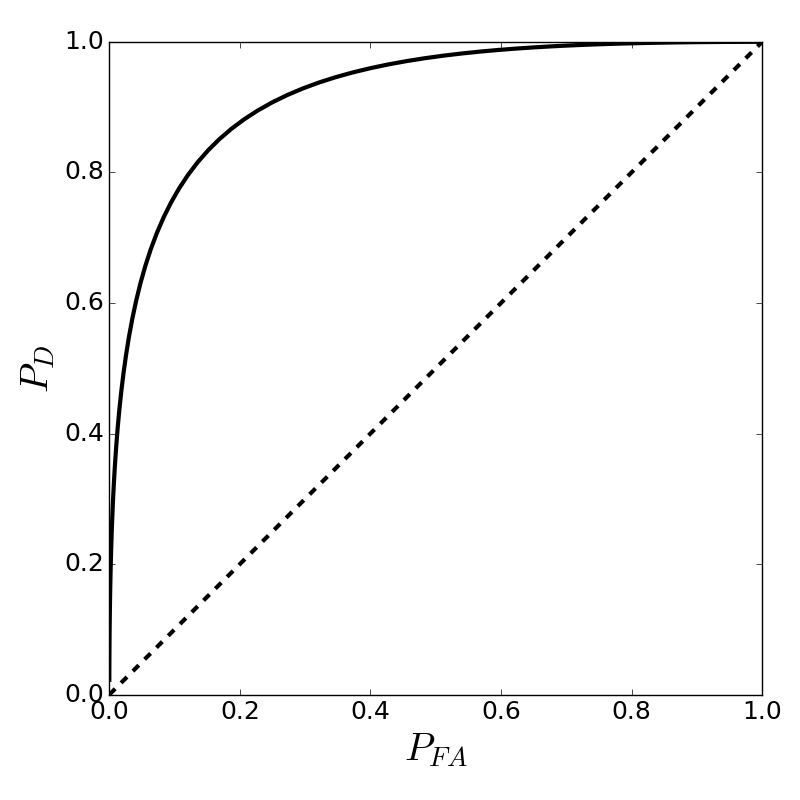 Because the majority vote test is a binary test, we can compute the Receiver Operating Characteristic (ROC) which is the graph of the $(P_{FA}, P_D)$. The term comes from radar systems but is a very general method for consolidating all of these issues into a single graph. Let's consider a typical signal processing example with two hypotheses. In $H_0$, there is noise but no signal present at the receiver,