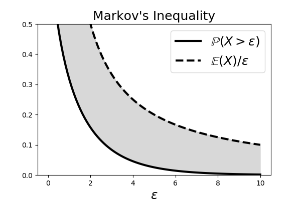 In practice, few quantities can be analytically calculated. Some knowledge of bounding inequalities helps find the ballpark for potential solutions. This sections discusses three key inequalities that are important for probability, statistics, and machine learning.